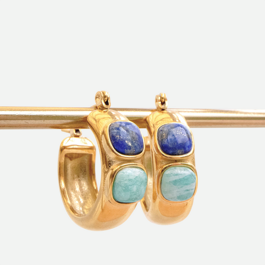Fairuz – Gold Earrings with Lapis Lazuli and Turquoise